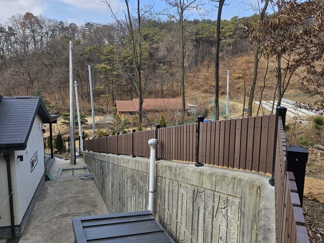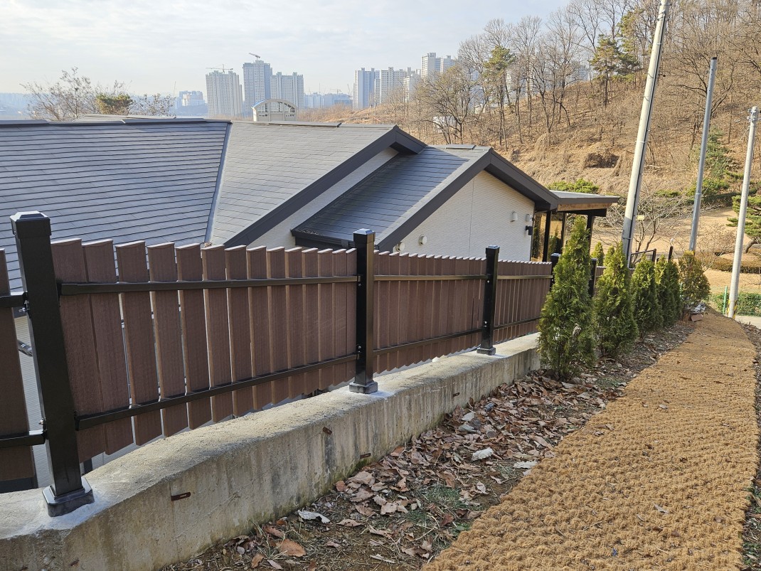 평택전원주택휀스 테라피아가림막(높이0.9용, 앙카용, 경사) 작성자관리자 등록일 25-12-15 조회307회 본문 테라피아가림막(높이0.9용, 앙카용, 경사) 부여 전원주택휀스 합성목재가림막 W-4000 + 기존설치구역에 프라이버시라텍스 화성봉담 농구장휀스 메쉬2단용 (높이 3.0, 기와진회색, 보조기둥 사용) 보조는 기초 기존스텐휀스 철거 후 시공 목록