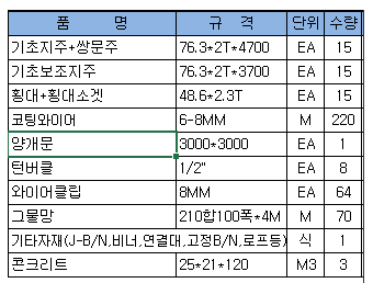 아래 품명 및 규격, 수량은 예전에 진행하려다가 못한 견적 내용입니다.